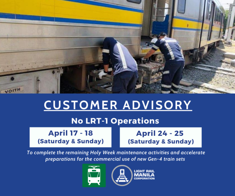 No LRT-1 operations on April 17-18, 24-25